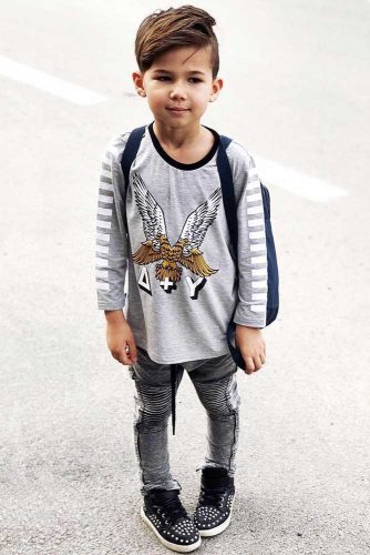 Мальчики всех возрастов могут носить прическу с зачесанными волосами назад, главное чтобы длина волос позволяла сделать подходящую стрижку. В тренде конические стрижки для мальчиков 2026 в стиле помпадур и андеркат, смотрящиеся на юношах очень стильно и привлекательно.